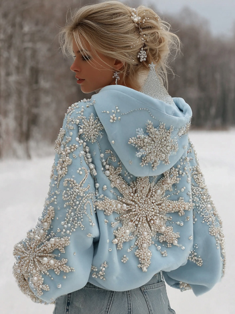 Women's Christmas Snowflake Pattern Casual Hoodie
