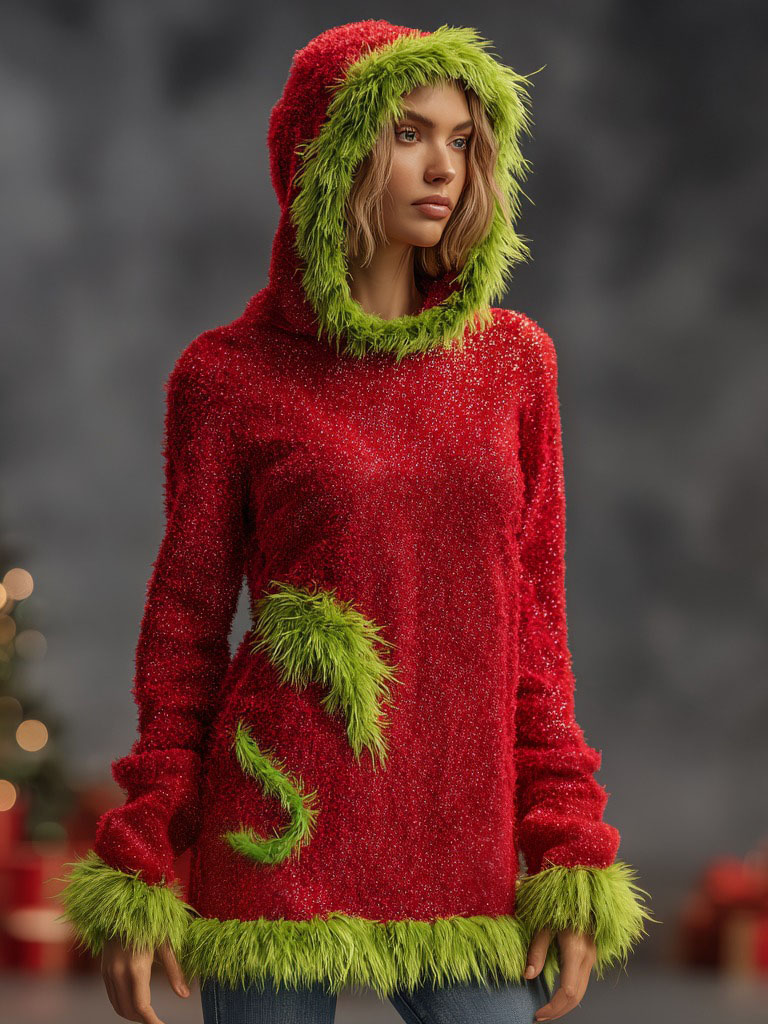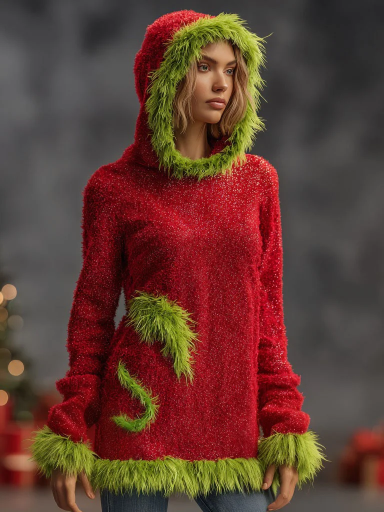 Women's Pearl Christmas Tree Art Cozy Hooded Sweater