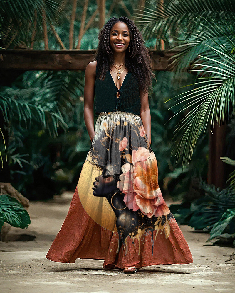 Black Woman Under The Moon Linen Pocket Skirt