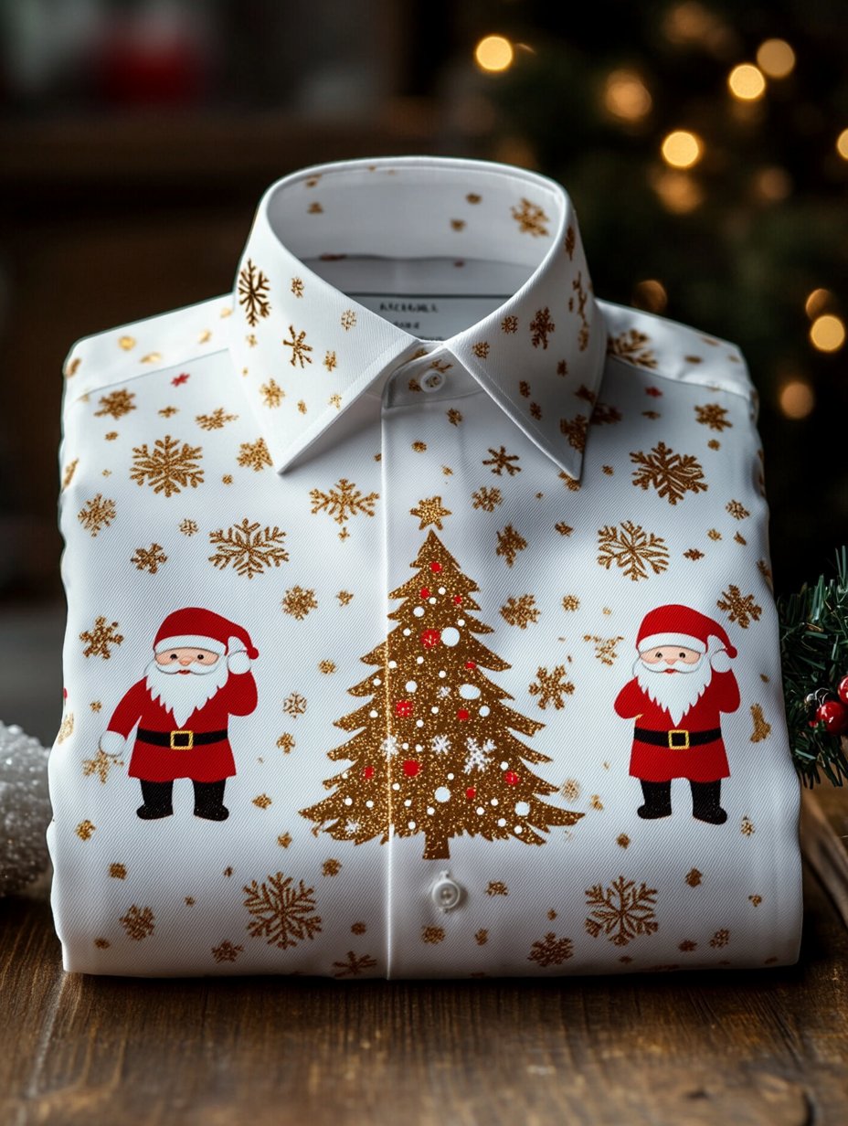 Men's Business Retro Santa Claus Print Long Sleeve Shirt