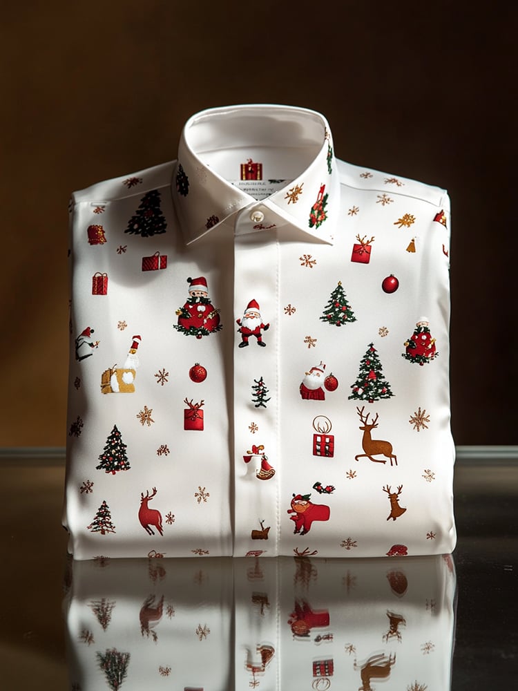 [High-end fabrics🧵]Men's Christmas Satin Luxe Long Sleeve Button Down Shirt