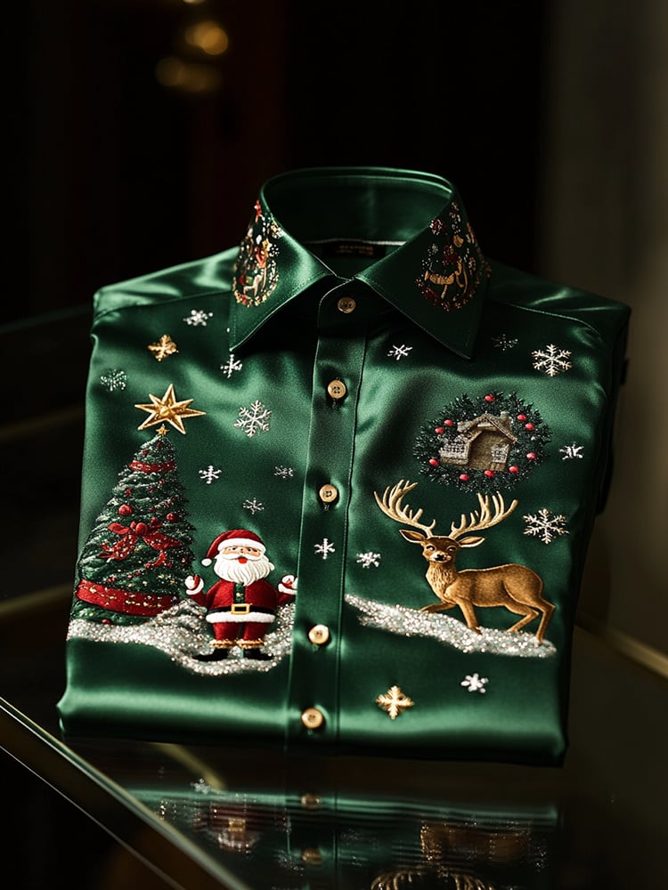 [High-end fabrics🧵]Men's Christmas Satin Luxe Long Sleeve Button Down Shirt