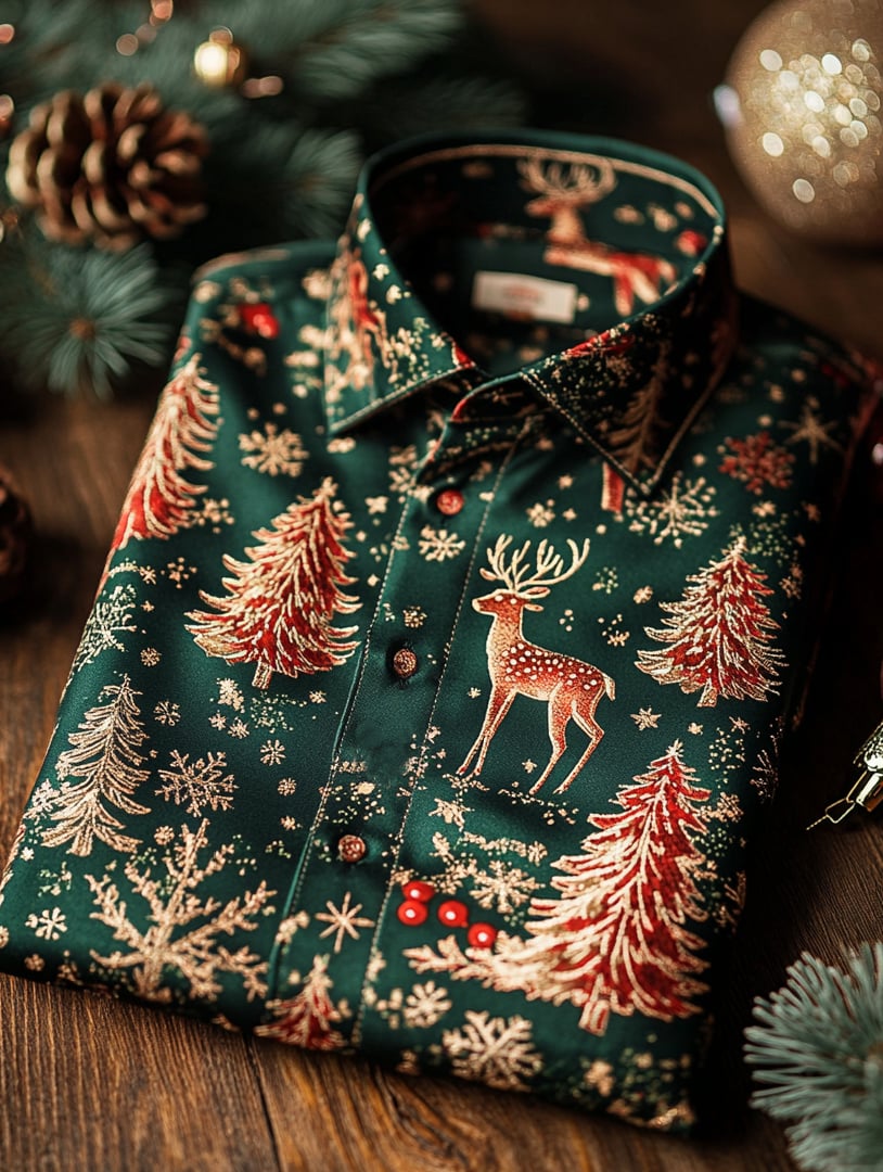 Men's Luxury Christmas Party Long Sleeve Button-Down Shirt